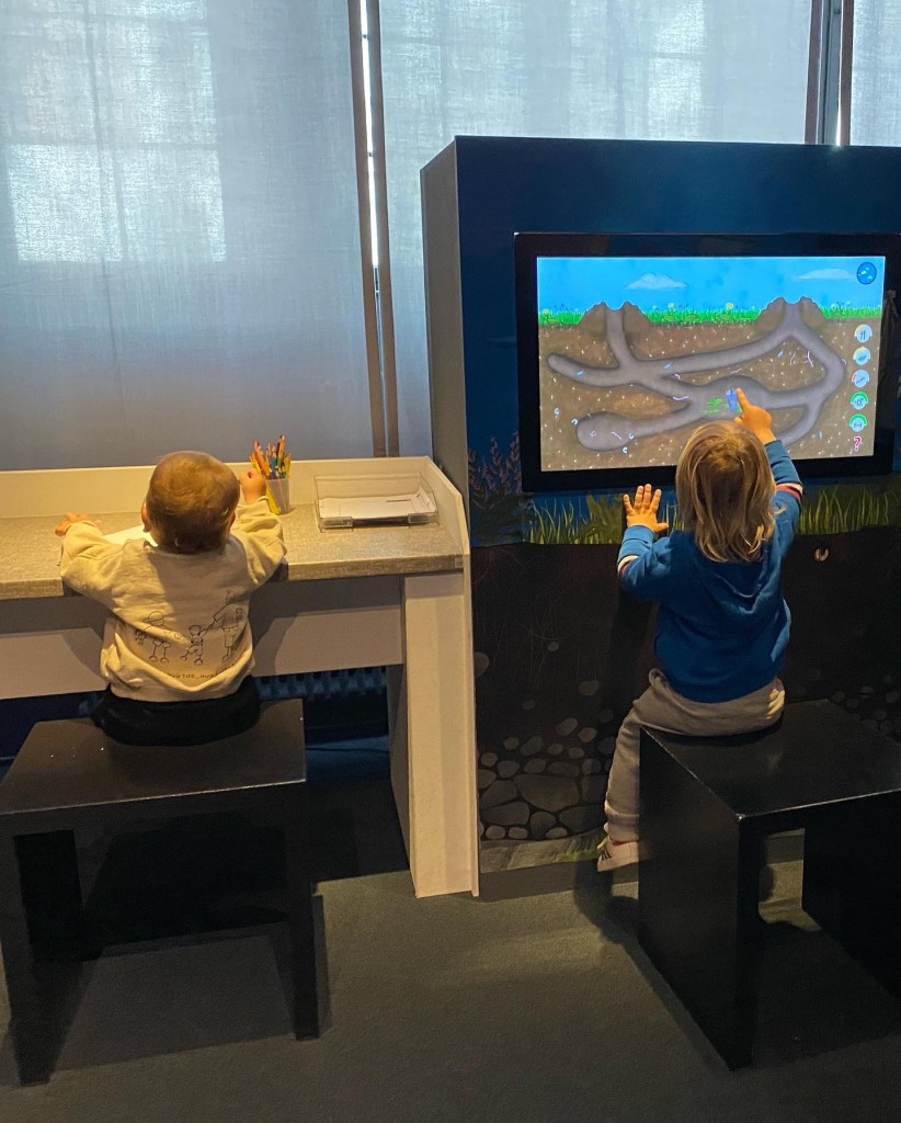 Malen, erkunden, spielen, Tiere ein Wettrennen machen lassen, auf dem Computer dem Maulwurf auf den richtigen Weg bringen oder entspannt bei @dominikeulberg konzipierter Musik ein Buch anschauen/ lesen. Hier ist echt alles Möglich und es wird nicht langweilig