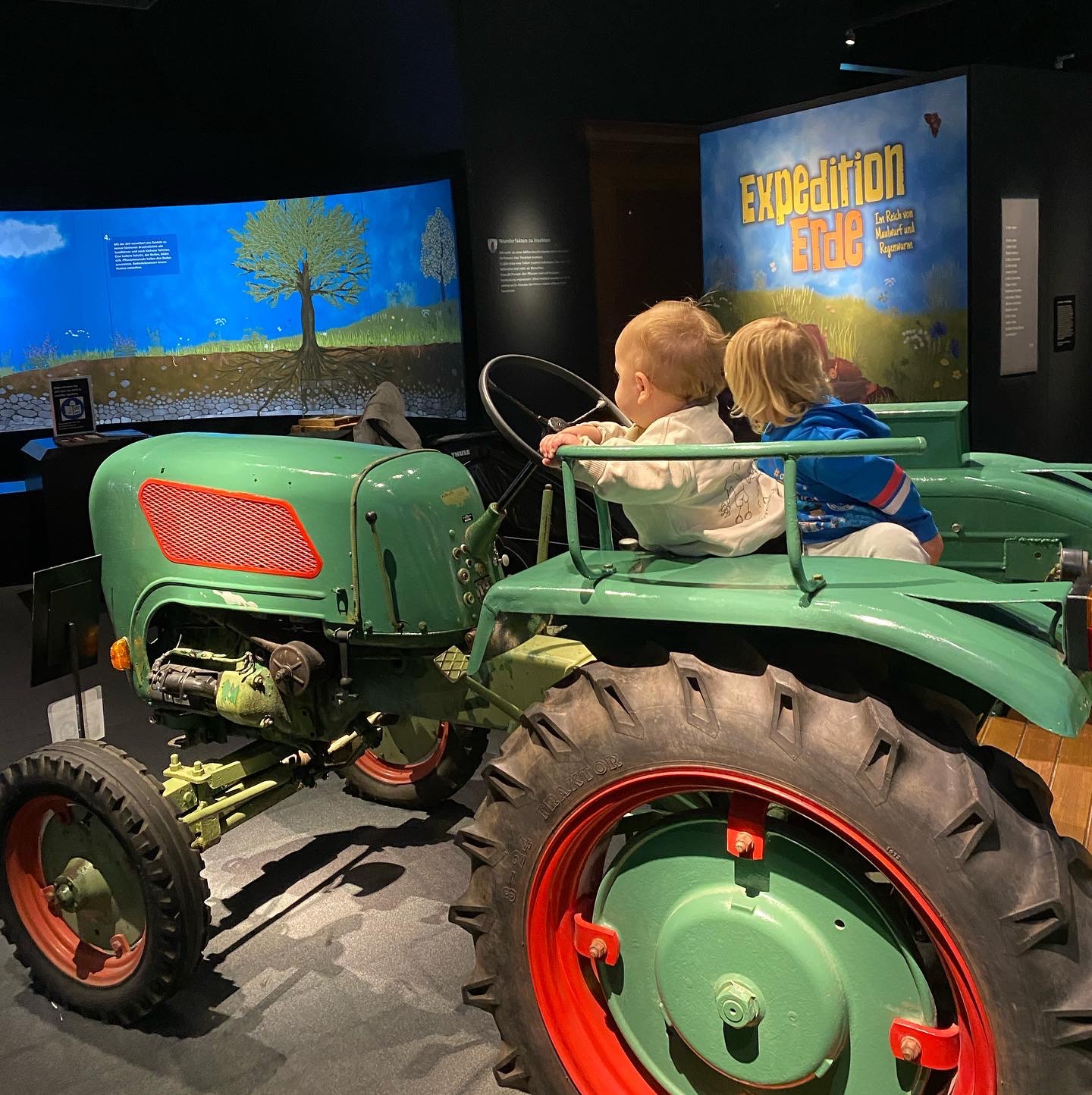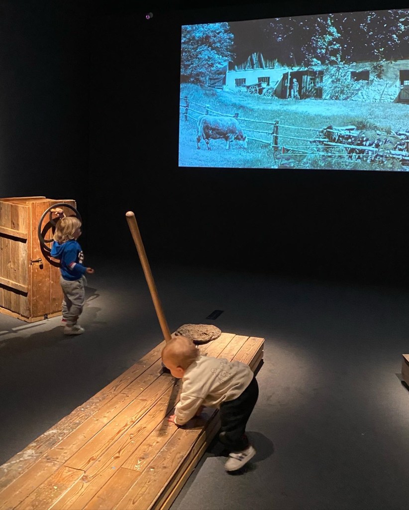 Im ersten Raum haben wir viel über die Landwirtschaft gelernt und konnten sogar den Bauernhof auf der großen Leinwand in Gang bringen 🚜